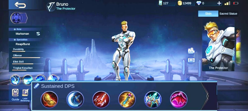 Hero Bruno adalah Marksman dengan critical damage yang tinggi. Skill pasifnya yang bernama Cannon Barrage bisa memberikan tambahan critical damage sebesar 20%.