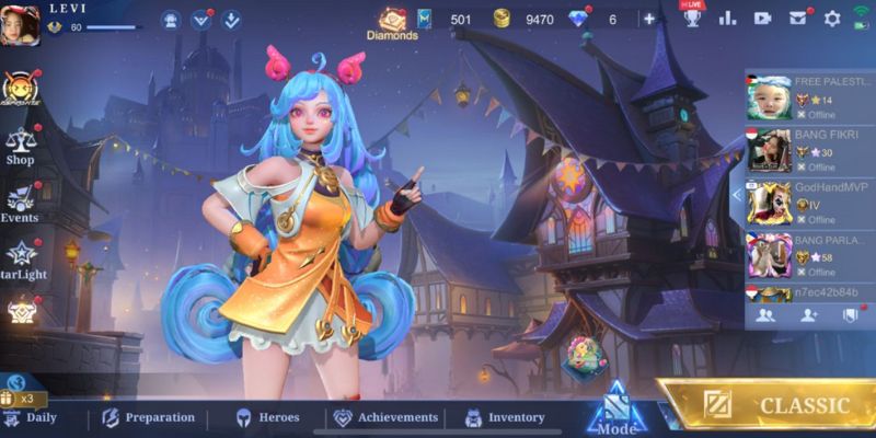 Mulailah dengan membuka aplikasi Mobile Legends di perangkatmu. Pastikan kamu sudah login menggunakan akun Google Play Games, Facebook, atau VK. Begitu kamu masuk, kamu akan langsung diarahkan ke dalam permainan.