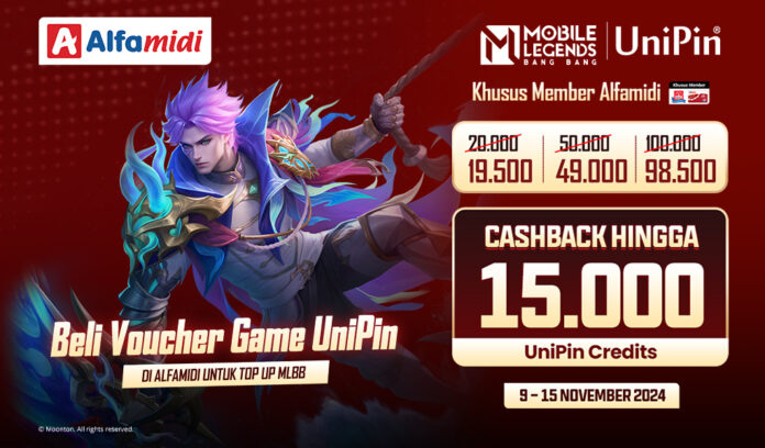 DISKON dan CASHBACK SUPER! Top Up MLBB Pakai Voucher Game UniPin di Alfamidi!